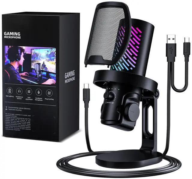 11 Customizable RGB Lighting Modes | Elevate Your Setup with This Microphone for PCElevate your gaming and streaming desktop setup with this dynamic microphone for pc, boasting 11 vibrant RGB lighting effectsincluding Breathing Gradient, Dynamic Flow, and a full range of static colors (Purple, Red, Blue, and more). Short-press the dedicated RGB switch to cycle through modes seamlessly, and the light automatically illuminates red when muted, keeping you informed of your mic status at a single glance. This eye-catching design makes it the perfect streaming microphone to sync with your gaming gear, or add visual flair to your live streams and content.