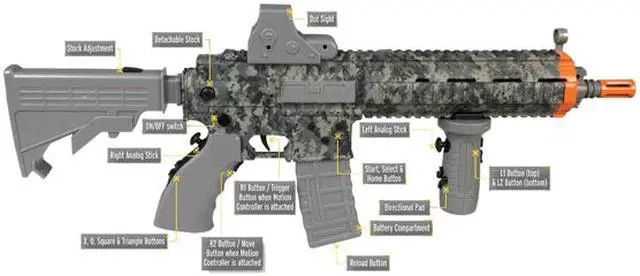 The controller also works with the cutting edge technology of the PlayStation Move. Simply insert a motion controller to play various Move compatible combat titles, such as Resistance 3, Killzone 3, MAG, Dead Space: Extraction and SOCOM 4. The Assault Rifle features digital button mapping, transforming your rifle into a Move motion controller rifle with instant response. In addition, the rest of the rifle can mimic the functions of a Move navigation controller. Equip yourself with pride using the U.S. Army Elite Force Assault Rifle for all your PS3 and Move shooting games.