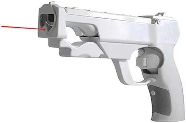 | Features | With this palm-fitted virtual gun, no enemy is safe in your crosshairs. Its gives it a feel of authenticity with its life-like mold, yet cannot be mistaken for a real gun with its white plastic façade. It has an infrared laser beam beneath the barrel so you can fire at your targets with pinpoint accuracy. Its smooth grip and texture along with its lightweight material makes it comfortable for extended play. Simply by placing the remote in the top cradle of the gun, you are ready to engage in virtual combat; all you have to do is aim and shoot. (Do not point laser directly into eye) |