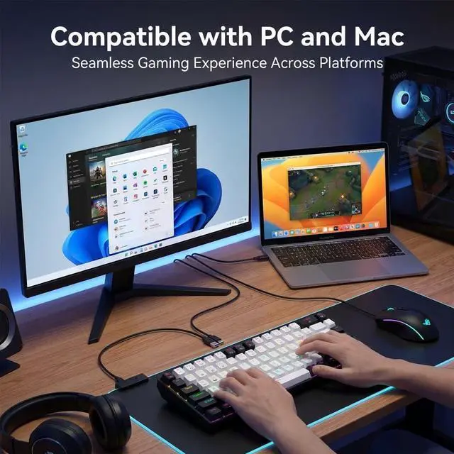 Designed for users who value performance and space efficiency, this 61-key mechanical keyboard delivers a clean, compact layout without compromising responsiveness. The ultra-compact design frees up desk space, allowing better mouse control and a more organized setup. High-quality mechanical switches provide smooth, accurate keystrokesideal for fast-paced gaming as well as focused work sessions. Dynamic RGB backlighting adds visual depth and personality, while maintaining a professional look suitable for any setup. With simple plug-and-play functionality and wide system compatibility, this keyboard is ready to perform the moment you connect it. A perfect balance of form, function, and performancebuilt for gamers and productivity-focused users alike.