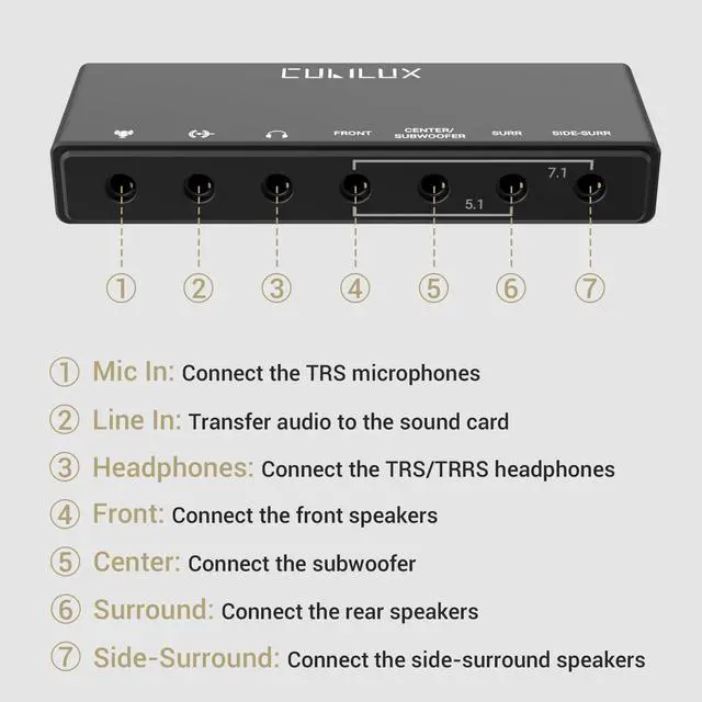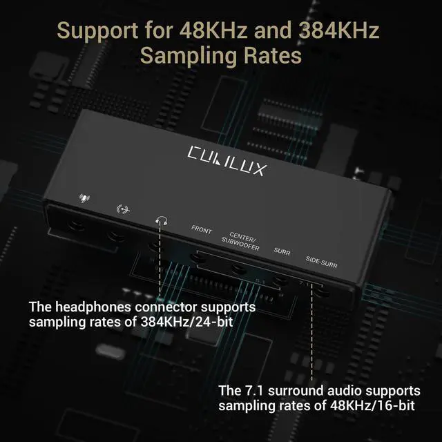 Introducing the Cubilux 7.1 Surround Sound Card, your gateway to audio perfection. Whether you're a gamer, music enthusiast, or movie buff, this sleek and powerful external sound card is your ticket to immersive soundscapes.