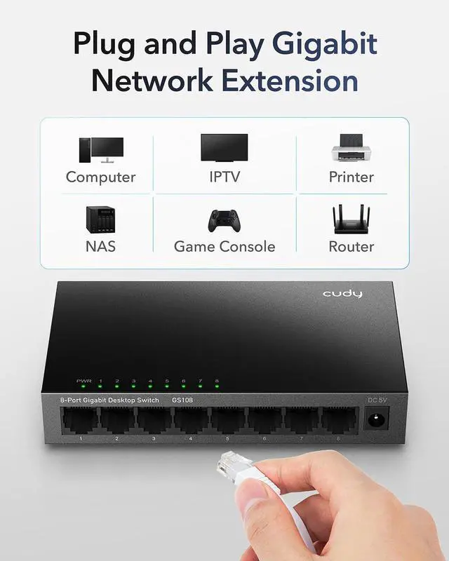 Compact enough to fit in most home network distribution boxes. Metal casing delivers simplicity and protection for your network hub.