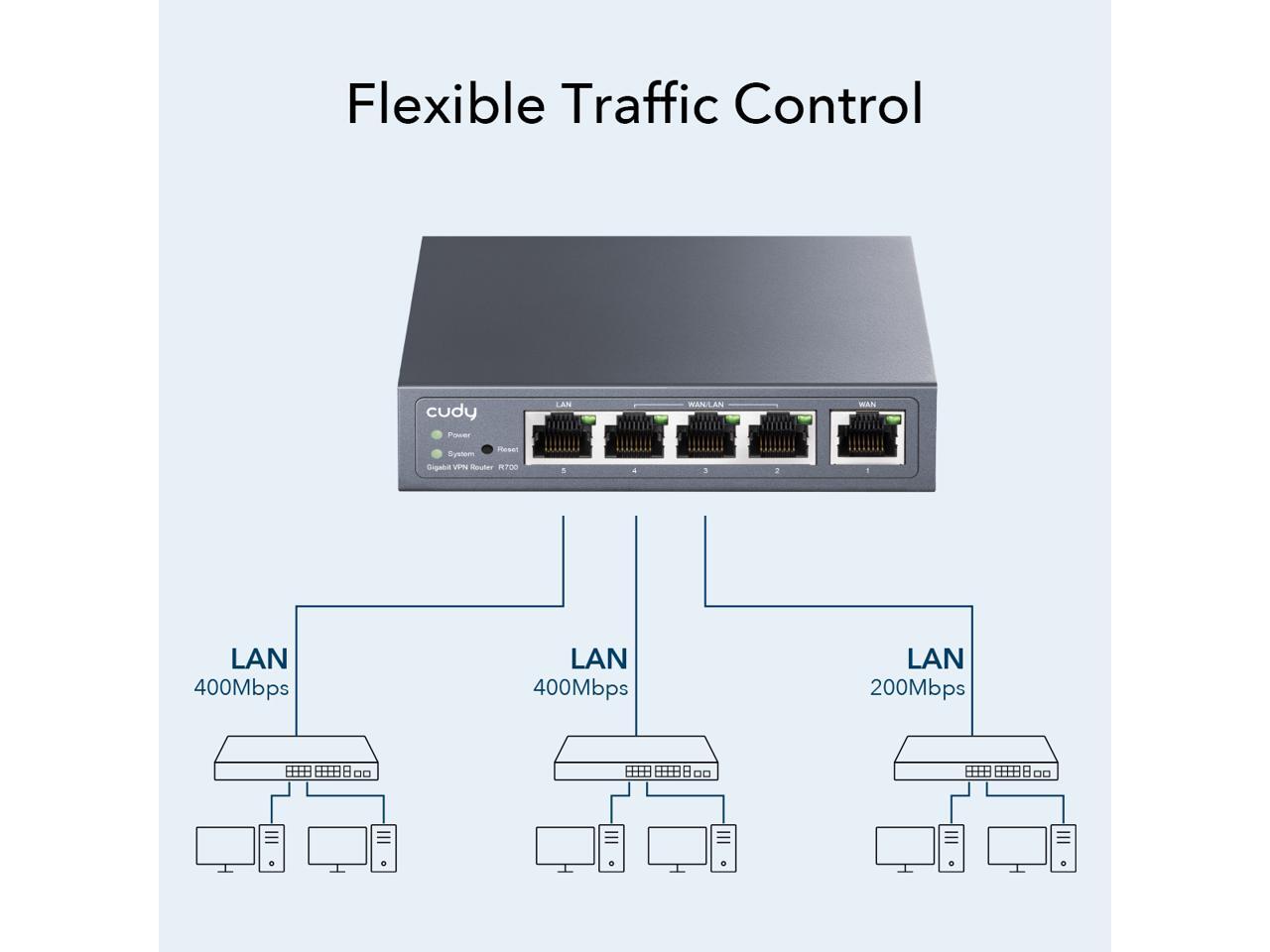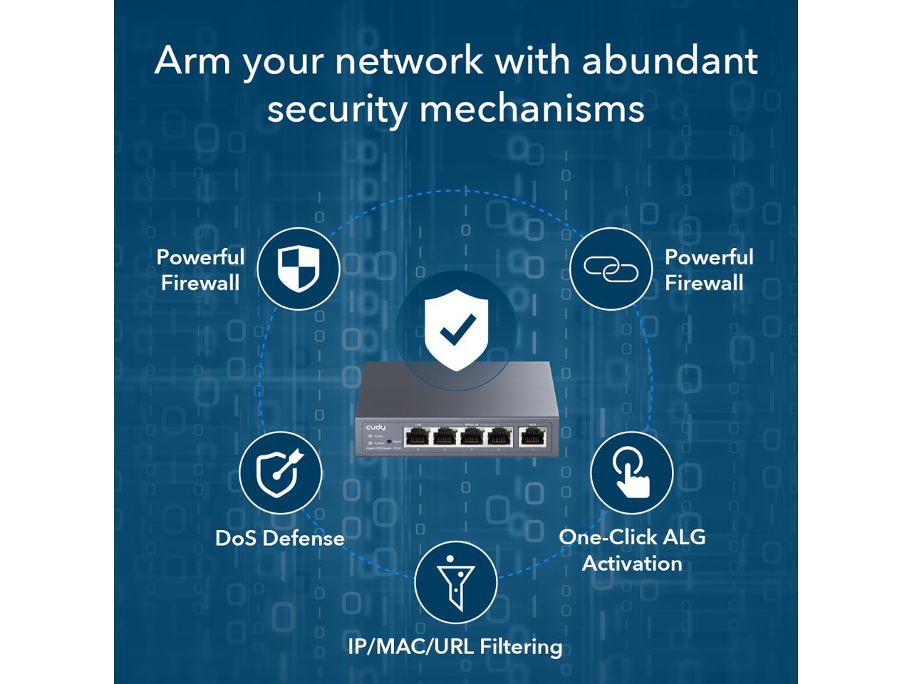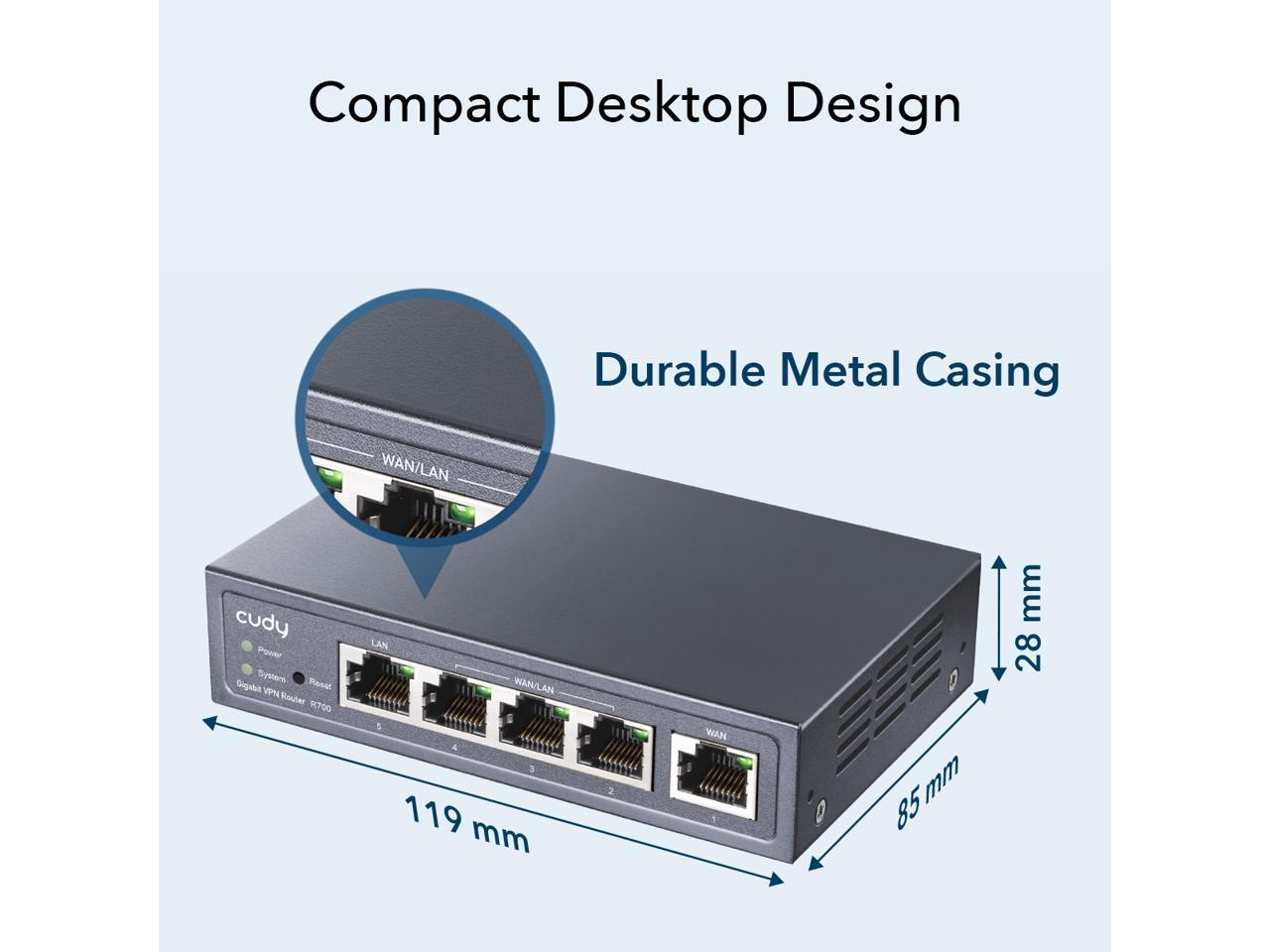 A router as the gateway of business networks, featuring up to four Multi-WAN for improved redundancy, load balancing, and VPN functions.