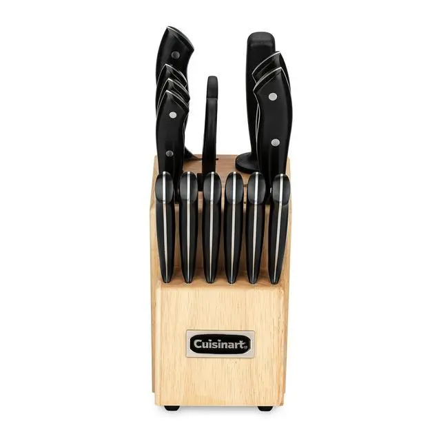 Enhance your culinary experience with the Cuisinart 15-Piece Stainless Steel Kitchen Knife Set. This versatile set includes 15 high-quality knives and a convenient storage block. Each knife is crafted from durable stainless steel and is designed for precision cutting. Whether you're slicing bread, cheese, or other ingredients, this comprehensive set has you covered. The sleek black design adds style to your kitchen, while the included storage block keeps your knives organized and easily accessible. Get ready to elevate your cooking with this essential knife set from Cuisinart.