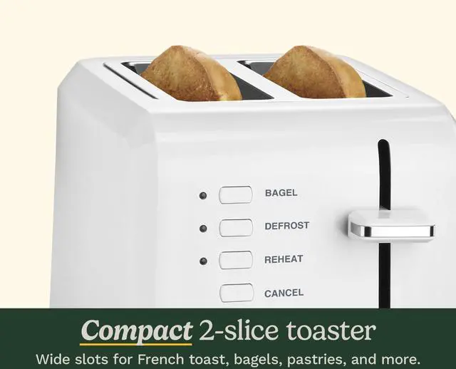 The classic toaster gets a modern update with the Compact Plastic Toaster by Cuisinart. Its contemporary styling allows for it to look good at any angle, while in use, or in storage in plain sight on the counter.