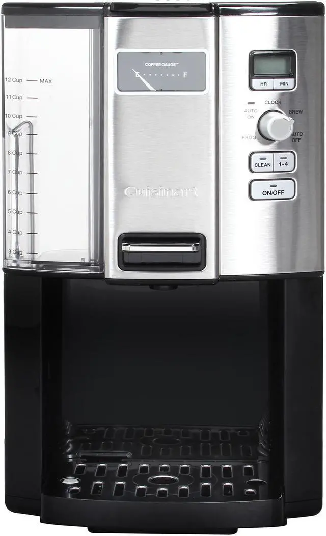 Dispenses one cup at a time with an easy-to-use actuator Removable coffee reservoir for easy cleanup Fully programmable with 24-hour advance brew start, programmable auto shutoff, self clean and 1–4 cup setting Easy-to-read Coffee Gauge lets you know how many cups of coffee are left Double-wall coffee reservoir holds twelve 5 oz. cups of coffee Dispenser light comes on when you press the lever to fill your cup Removable water reservoir