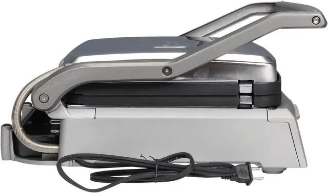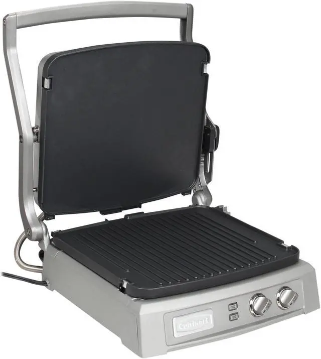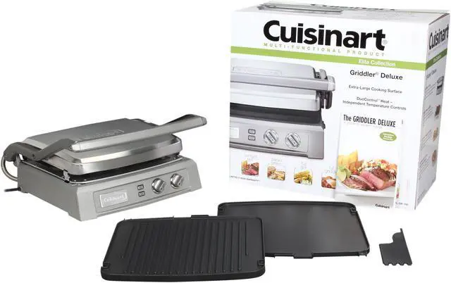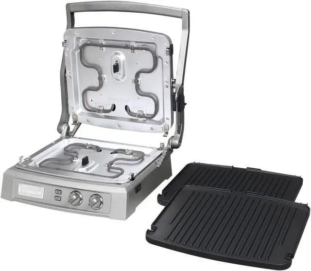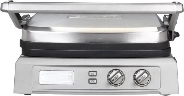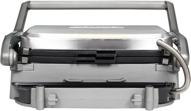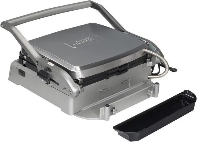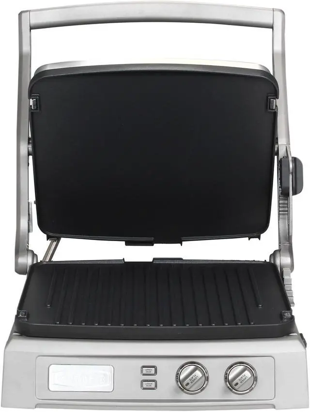 Six cooking options in one: contact grill, panini press, full griddle, full grill, half grill, half griddle, top melt Removable, reversible and nonstick grill/griddle plates Dual-zone temperature control Sear function can sear at 500˚F for up to two minutes at a time Adjustable top cover with 6 presets to top melt and lock for storage Large grilling surface: 240 square inches open Brushed stainless steel housing Integrated drip tray Cleaning/scraping tool All accessories are dishwasher safe Red/green LED indicator lights Instruction/recipe book Limited 3-year warranty