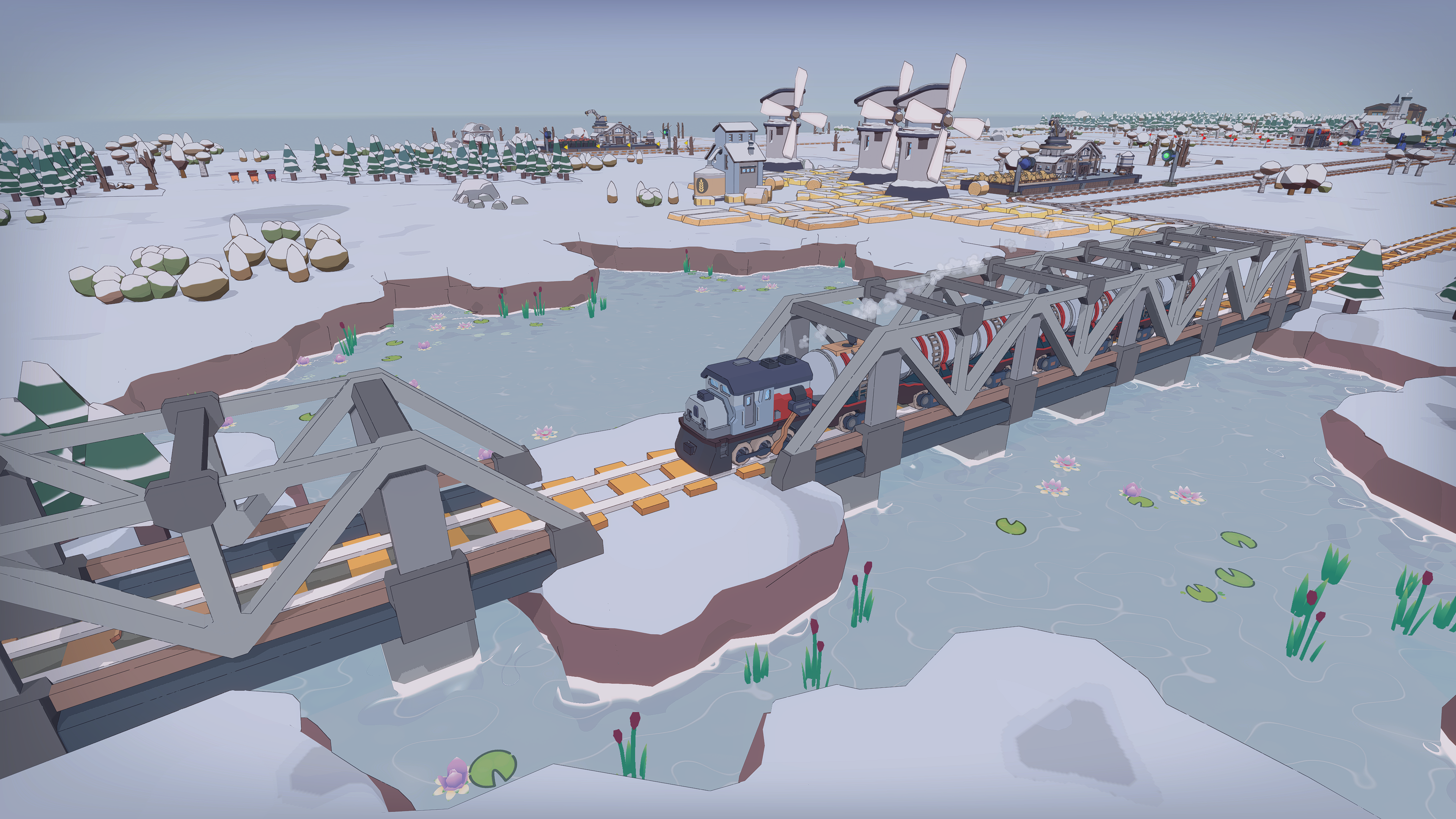 Forget about the fiddly side of crafting complex railroad systems in other train tycoon games. Instead, use your cursor like a painter’s brush and let the game automatically figure out T-junctions, bridges, or even curved rails!?