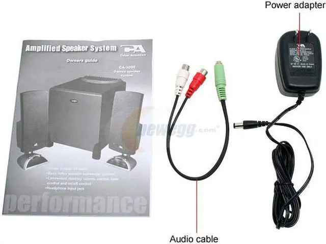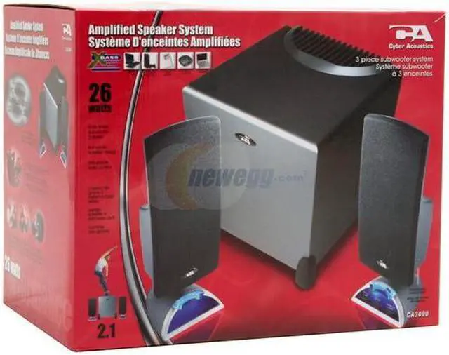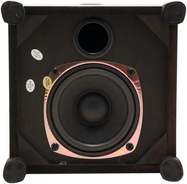 | Features | Convenient desktop controls: On/off switch Master volume Bass volume Illuminated power on indicator on satellites Magnetically shielded satellite speakers Acoustic balanced wood cabinet subwoofer Bass reflex, ported enclosure on subwoofer Headphone output jack Video game adapter cable included |