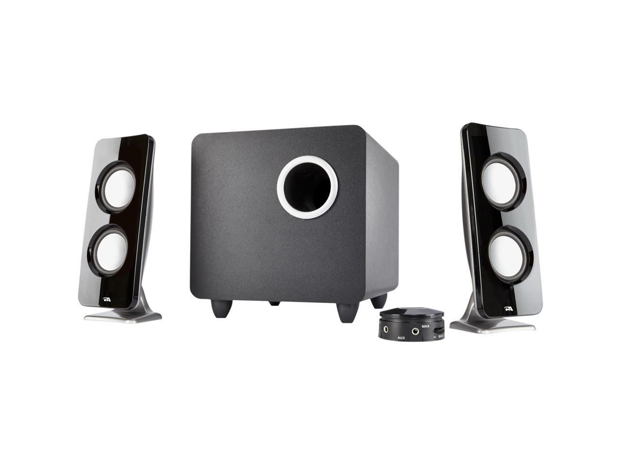 - Curve series design combined with today's aluminum tech styling, make for an appealing 3 piece speaker system and subwoofer