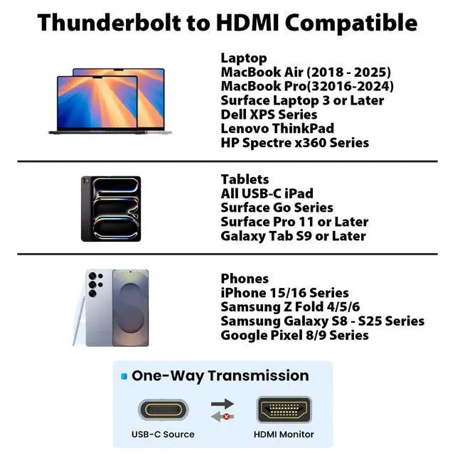 4K@30Hz High-Definition Video Output. Compatible with MacBook Pro/Air, iPad Pro, XPS