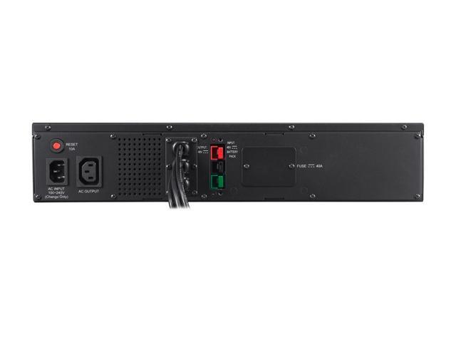 This 2U pack aesthetically match the UPS's, and can similarly be rack or tower mounted. The heavy gauge power cord is adapted with plug-n-play DC connectors for easy installation. The all metal enclosure safely houses the 8 (eight) 12V 9Ah batteries which are connected via 2 strings of 4 in serial. Up to 10 battery packs can be daisy-chained to the UPS for extended run-times.