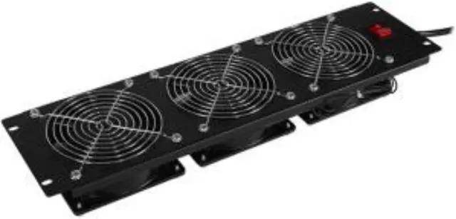The CRA12003 Carbon Rack Fan improves ventilation in rack enclosures. The fan panel has (3) 208 Vac high performance fans and a 6.5 ft power cord with IEC-320 C14 input plug. Mounting hardware is included. The CRA12003 is covered by a 2-year limited warranty.