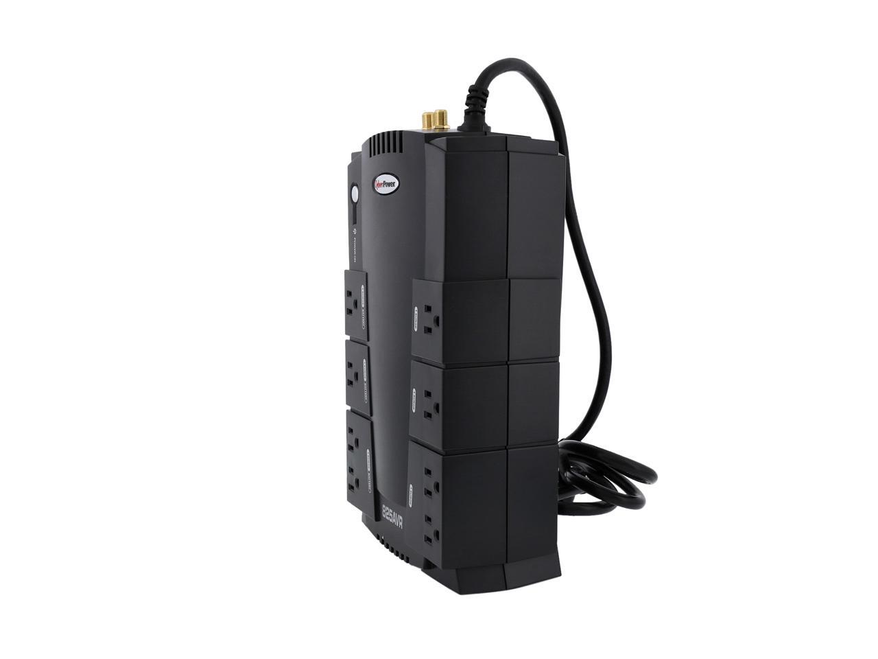 | Features | Waveform: Simulated Sine Wave Battery Backup Supplies power long enough for equipment to properly shut down when utility power fails. Helps prevent loss of data and minimizes the component stress caused by a hard shutdown. Surge Protection Diverts excess voltage away from sensitive electronic equipment during an AC power surge or power spike to prevent damage. Data Line Protection Prevents power surges that travel through telephone, coaxial, and Ethernet lines from causing damage to electronics. Line Interactive Topology Exists when a line interactive Battery Backup/ UPS has an autotransformer that regulates low voltages (e.g., brownouts) without having to switch to battery. Simulated Sine Wave Output Uses pulse wave modulation to generate a stepped, approximated sine wave to supply cost-effective battery backup power for equipment that does not require sine wave output. GreenPower UPS Bypass Design Is a unique design that allows utility power to bypass the UPS transformer, when AC power is stable, which reduces energy consumption, noise, and heat buildup. Ultra Quiet Design Minimizes noise during operation for a quieter work environment. LED Status Lights Indicate Power-On and wiring faults. PowerPanel Personal Edition Software Provides a user-friendly dashboard interface for controlling and monitoring the UPS. Free software download available. ENERGY STAR This model is an ENERGY STAR certified Uninterruptible Power Supply (UPS) system. ENERGY STAR is the trusted, government-backed symbol for energy-efficient products and practices that help save money and protect the environment. |