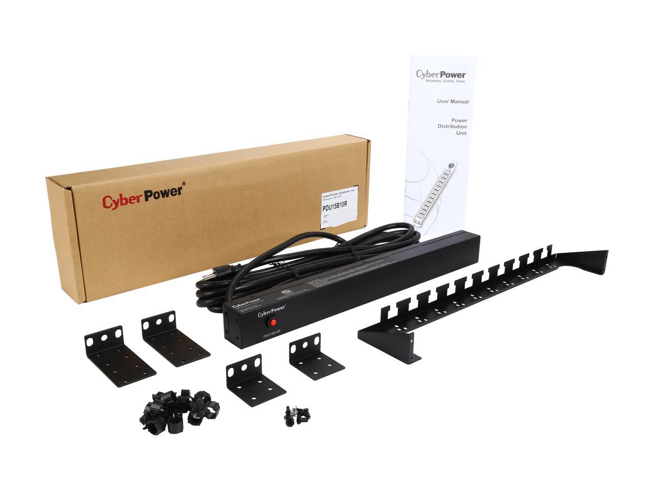 CyberPower PDU15B10R Basic 1U 120V 15A 15 ft. 10-Outlets PDU