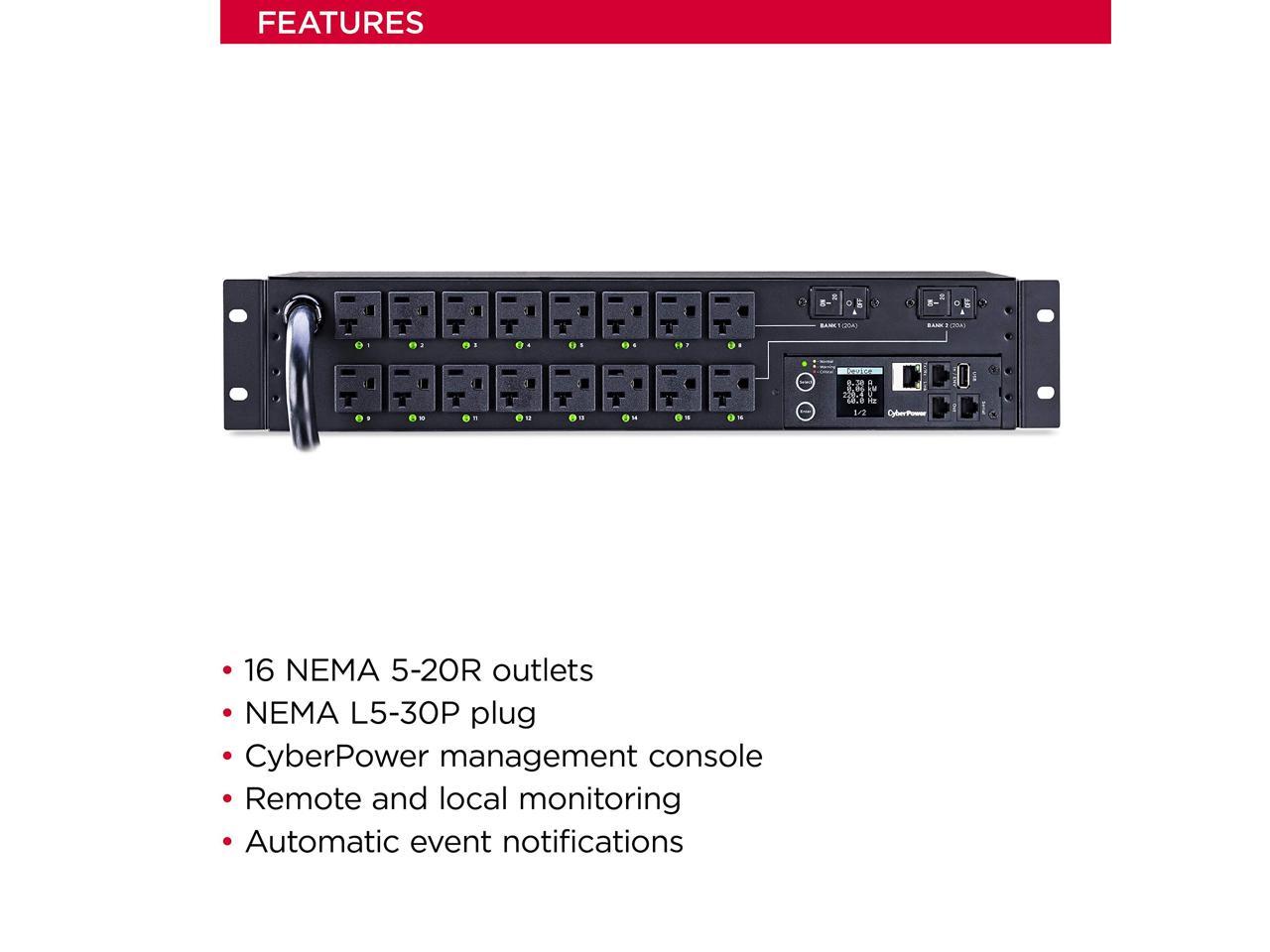 16 SWITCHABLE NEMA 5 20R OUTLETS: Provides local and remote control for individual and multiple outlets
