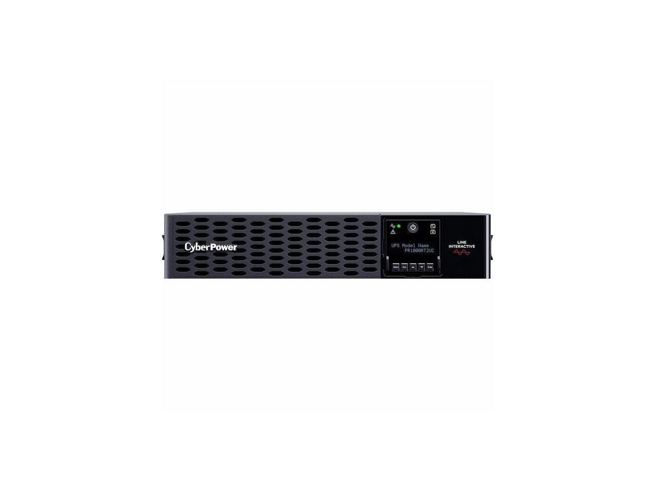 CyberPower PR1000RT2UC Smart App Sinewave UPS Systems - 1000VA/1000W, 120 VAC, NEMA 5-15P, 2U, Rack / Tower, Sine Wave, 8 Outlets, LCD, PowerPanel® Business