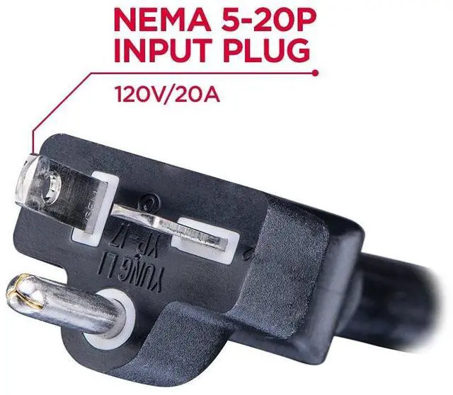 • Plug type & cord: NEMA 5-20P, 10 ft. cord