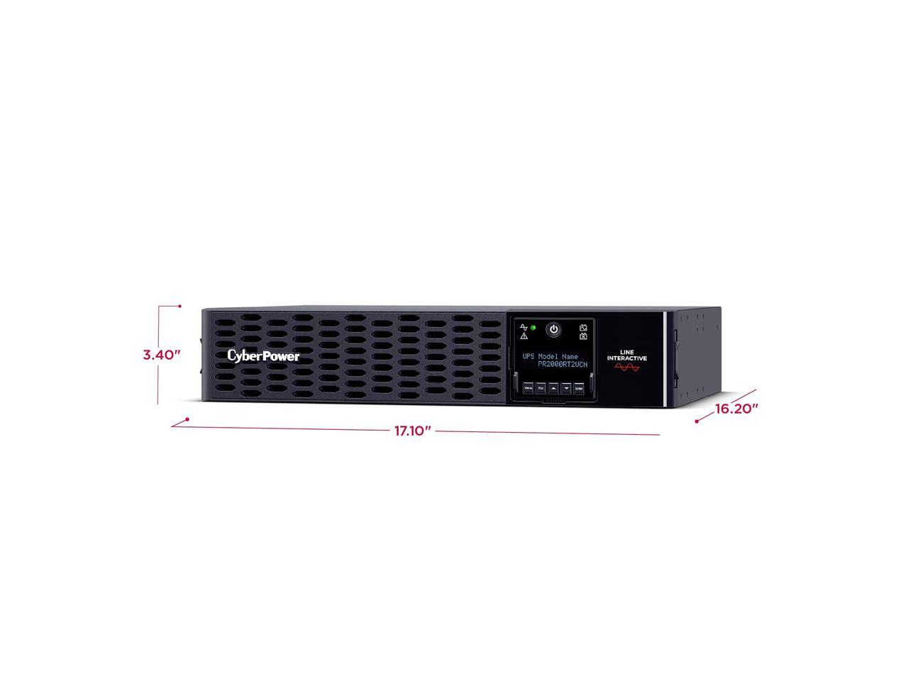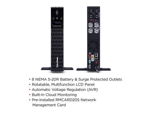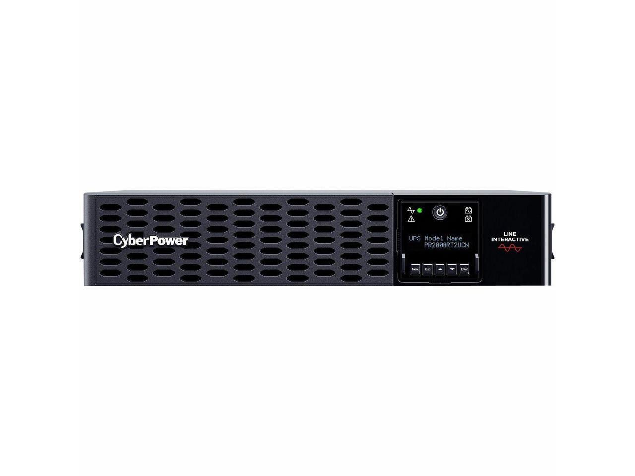 CyberPower PR2000RT2UCN Smart App Sinewave UPS Systems - 2000VA/2000W, 120 VAC, NEMA 5-20P, 2U, Rack / Tower, Sine Wave, 8 Outlets, LCD, PowerPanel® Business