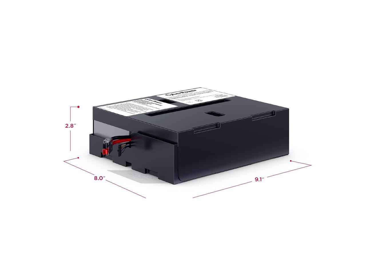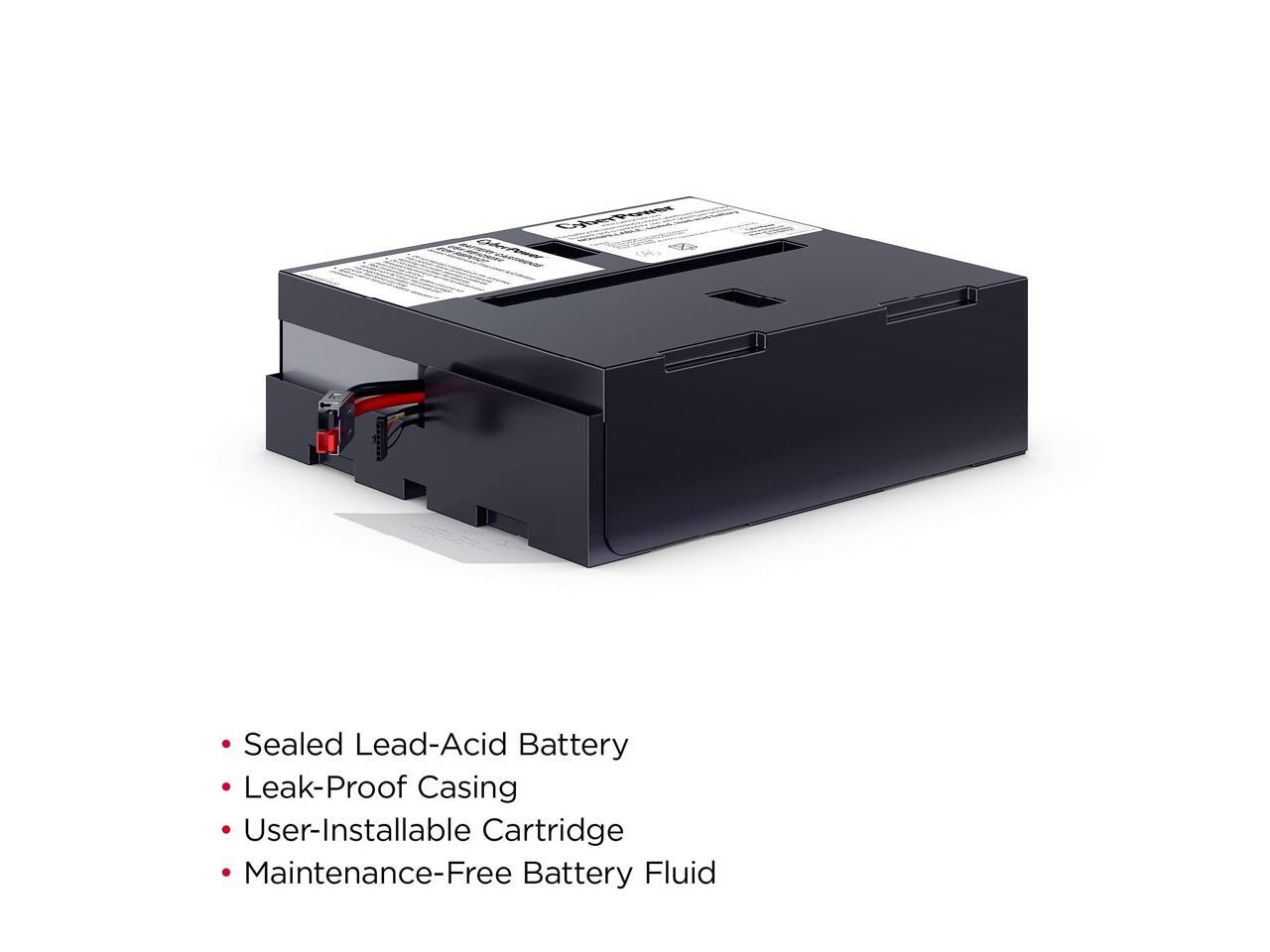This leak-proof, sealed lead-acid battery never requires replacement fluid. The pre-assembled cartridge installs easily into your CyberPower UPS system and is shipped with reusable packaging for delivering expired batteries to a suitable recycling center.