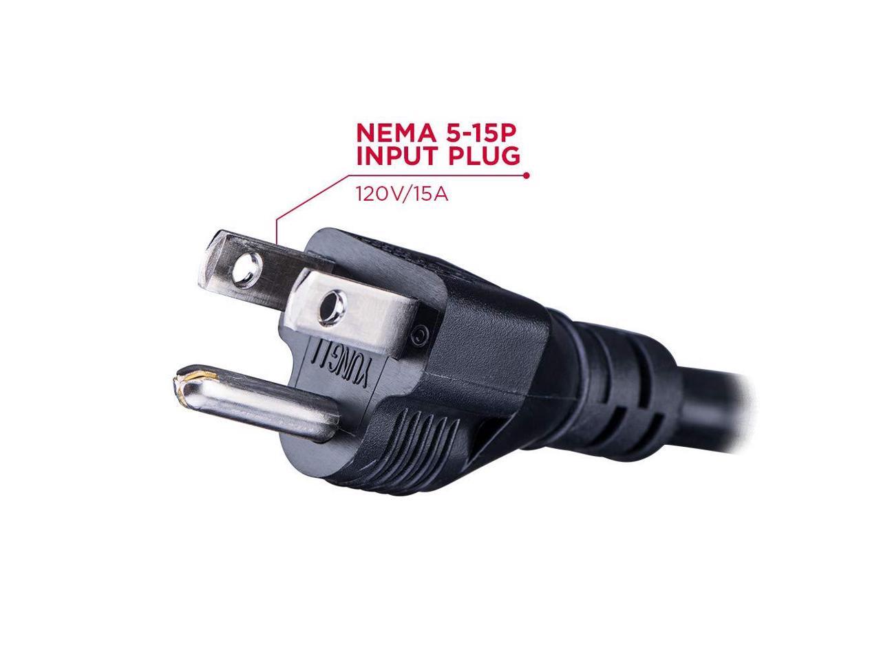 - Plug type & cord: NEMA 5-15P, 5 ft. cord