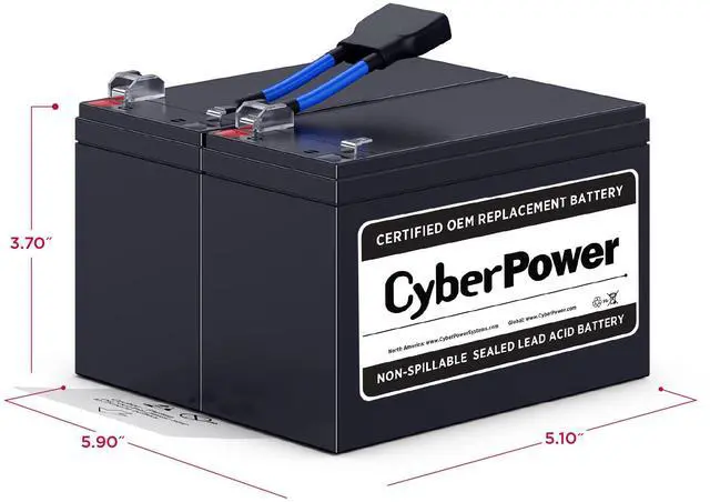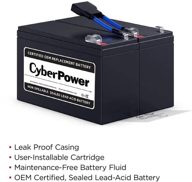 The RB1290X2B UPS Replacement Battery Cartridge restores life to CyberPower UPS systems that have weak or completely depleted internal batteries. The RB1290X2B contains two 12V/9Ah batteries, certified to meet or exceed original manufacturer specifications. This leak-proof, sealed lead-acid battery never requires replacement fluid.