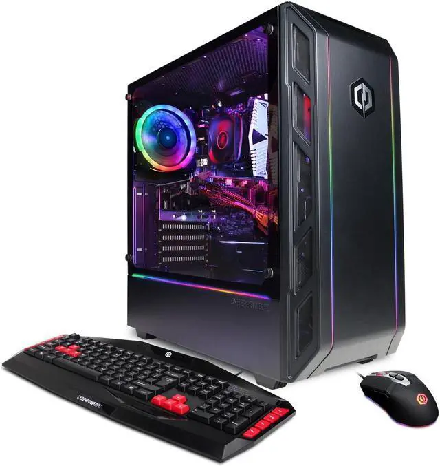 The CyberPowerPC Gamer Master 2787D gaming desktop combines an AMD Ryzen 7 2700 processer and an AMD Radeon RX 580-based graphics card to deliver performance that handles AAA titles and demanding work loads. The edge-to-edge transparent side panel lets you show off your internal components while the included gaming keyboard and mouse let you begin playing right out of the box. DDR4 memory ensures efficient multi-tasking and enables switching between programs smoothly and responsively. Windows 10 has native support for advanced APIs like DirectX 12, which allows this desktop computer to take full advantage of cutting-edge technologies and the next-generation of games and graphics.
