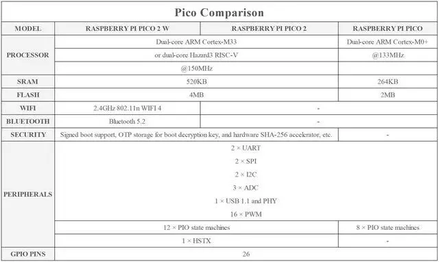 12 x Programmable I/O (PIO) state machines for custom peripheral support.