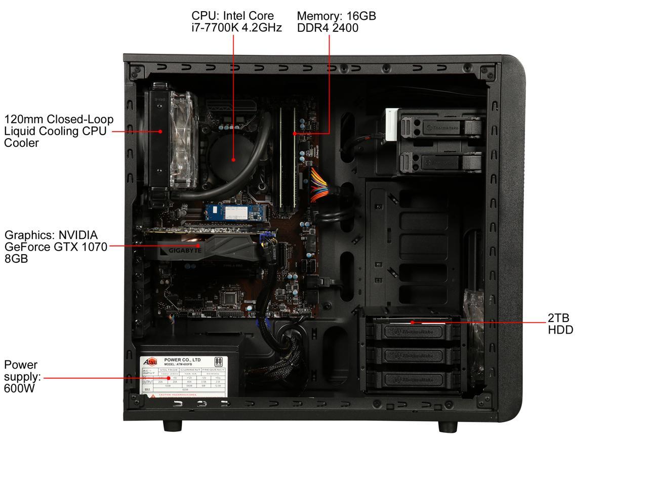 CyberpowerPC Desktop Computer Zeus Evo Thunder S75 Intel Core i7-7700K 16GB DDR4 2TB HDD 16 GB Optane Memory GeForce GTX 1070 Windows 10 Home 64-Bit