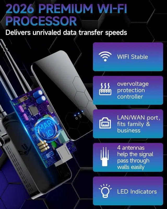 2026 WiFi Extender Internet Booster, 10000 Sq.ft Long Range Repeater Wireless Routers Amplifier, Mesh Wi-Fi 80% Faster | Broader Than Ever, Support More Network Devices at Home, 1-Tap Setup