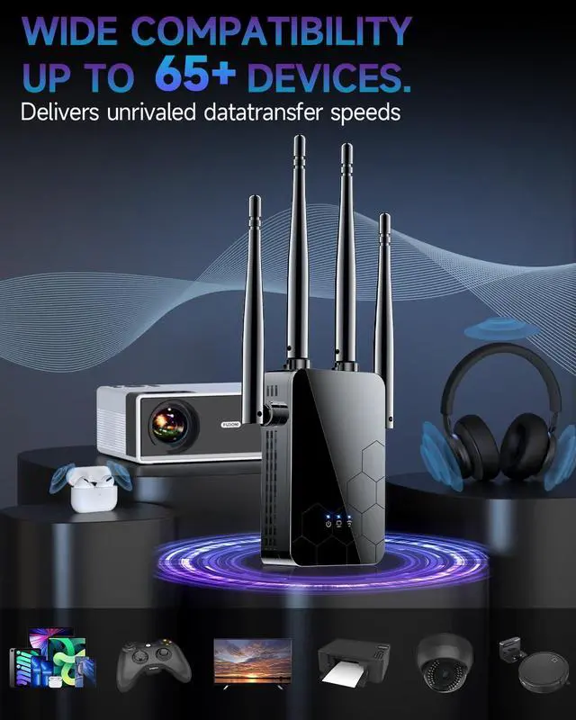 WE'VE GOT YOU 360°FULL SIGNAL COVERAGE: This internet boosters equipped with 4 cutting-edge external antennas achieve the stronger, higher penetration, extend your wireless internet network coverage up to 10000 sq.f, Eliminates WiFi dead zones to provide you consistent and stable WiFi throughout your home