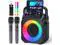 This portable multi-function karaoke machine home system packages boasts 15W 6.8-inch premium speakers, upgraded Bluetooth 5.2, two interference-free wireless microphones, dynamic colored lights, and supports TF card/USB/AUX inputs. With powerful sound, clear vocals, and easy operation, it doubles as a speaker, microphone, radio, media player, and guitar ampideal for fun. Equipped with advanced high-bass separation tech, its 15W full-range speakers ensure crystal-clear treble and bass for top-notch audio. Ultra-portable at 8.5×4.8×10.7 inches and 4.4 lbs (45% smaller and 60% lighter than similar models), it offers 68 hours of playback, perfect for handheld or shoulder carry. TWS mode lets two machines form a dual-speaker system for stereo sound (microphone audio only from paired speakers), while 5 dynamic light modes enhance parties or barbecues. A great gift for birthdays, Christmas, etc., avoid mic heads near speakers to prevent sound reflex noise.