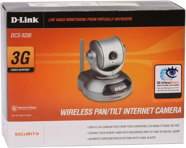Great Surveillance FunctionalityThe D-Link DCS-5220 network camera provides pan and tilt functions so you can adjust the monitoring range for complete surveillance. Plus you can set the camera to record video to your hard drive or send automated e-mail alerts when motions are detected.