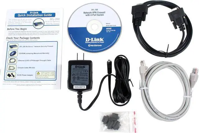 | Package Contents | DFL-200 Quick Installation Guide Resource Disk Power Adapter RJ45 Cable Console Cable (RS-232) Other Accessories |