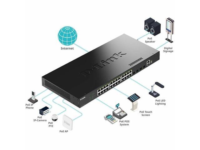 D-Link DGS-1530-28P 24 Port Ethernet Switch - Manageable - Gigabit Ethernet, 10 Gigabit Ethernet - 2 Layer Supported - 456W Power Consumption - 370W PoE Budget (DGS-1530-28P)