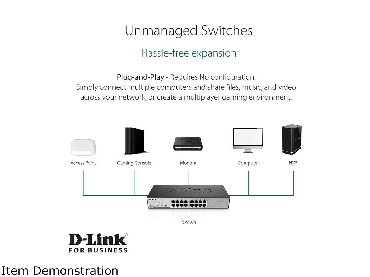 D-Link Ethernet Switch, 16 Port 10/100 Unmanaged Desktop, Fanless Rackmount Network Hub Internet (DSS-16+)