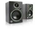 Pros: -The size of bookshelf speakers, these produce quite a lot of sound, the frequency response is within +/- 1 DB at all frequencies. -They fill the room and have as much bass as 2.1 units at twice the price but half the build quality. -The green accents are cool.