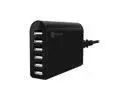 Pros: Small size and will handle 6 devices. I have 2 iPhone's and an iPad charging each night and it runs cool. I really like the detachable power cord because if the cord gets damaged it can be quickly replaced. It uses a very standard power cable