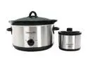 Pros: Easy way to cook, yet have food ready when you return from work. Came with a mini fondue crock pot too. Simple easy to clean, what more could you want?