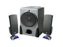 Pros: Plenty of bass, loud enough. Attractive blue LED. The power plug is not a brick, which is definitely a pro if you're running out of space on your power strip.