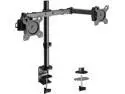 Pros: It holds 2 monitors and has independent adjustment for height. Shipping was quick.