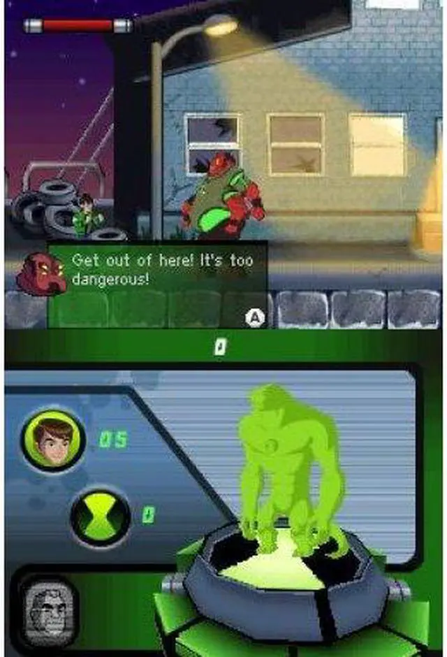 | Features | Fast-Paced, 3D Side-Scrolling Action Gameplay with a mix of puzzle solving and platforming. Fight Enemies from the Show, including Forever Knights, Xenocites, DNAliens, and HighBreed! Five Playable Alien Forms: Swampfire, Big Chill, Humungousaur, Jet Ray, and Spidermonkey! Fluidly Link Your Attacks to unleash devastating combos! Gain Experience and unlock 6 additional moves per alien for a total of 30 unlockable attacks. Original Story based on characters and events in the first season of Ben 10: Alien Force. Play as Gwen and Kevin in level segments designed around their special abilities. Fast paced side scrolling action gameplay with a mix of puzzle and platform Five playable alien forms include swampfire, Big Chill, Humungosaur, Jet Ray and spidermonkey Fluidly link your attacks to unleash devastating combos Original story based on characters and events in the first season of Ben 10 Alien Force Play as alternate alien forms including Goop and Echo Echo |