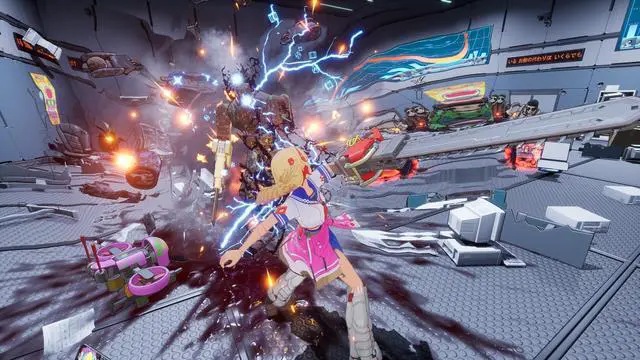 A fully armed cyborg heroine storms into a giant corporation and unleashes a relentless barrage of gunfire and sword action in this exhilarating cyborg schoolgirl action adventure. The feeling of immorality is irresistible when you break into an office and wreak havoc.