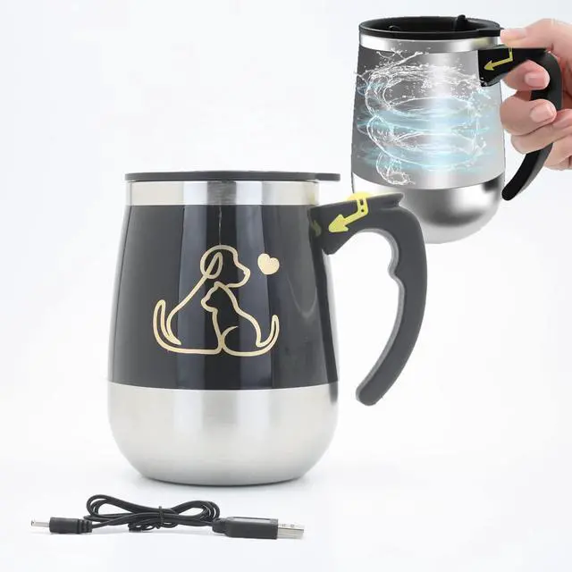 Rechargeable Self Stirring Mug - Magnetic Electric Auto Mixing Stainless Steel Cup for Office/Kitchen/Travel/Home Coffee/Tea/Hot Chocolate/Milk-390 ml/13.2 oz(Black)