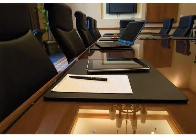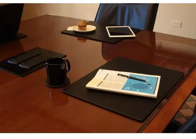 Put the finishing touch on your boardroom or meeting space with this black leatherette conference table pads by Dacasso. This pad has been our best-selling conference room accessory for many years, and for good reason! Simply put, there is no better way to organize, protect, and decorate your conference facility, especially at the unbeatable price point of this leatherette pad. The 17" x 14" size is the best size for most tables, making it the size of choice.