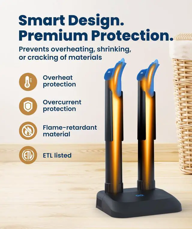 SILENT & EFFECTIVE DRYING SYSTEM: Designed with convection heat, this boot dryer silently dries one pair of shoes, boots, or sneakers at a time without loud noise. These fanless shoe dryers for sneakers, boots, sports footwear, and winter gear circulate warm air gently and evenly and work overnight, protecting materials from over heating, shrinking, or cracking. This portable shoe drying rack can be used for the whole family.