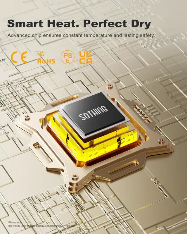 a) PTC chip auto cut-off, which powers off above safe limits and automatically resumes after cooling