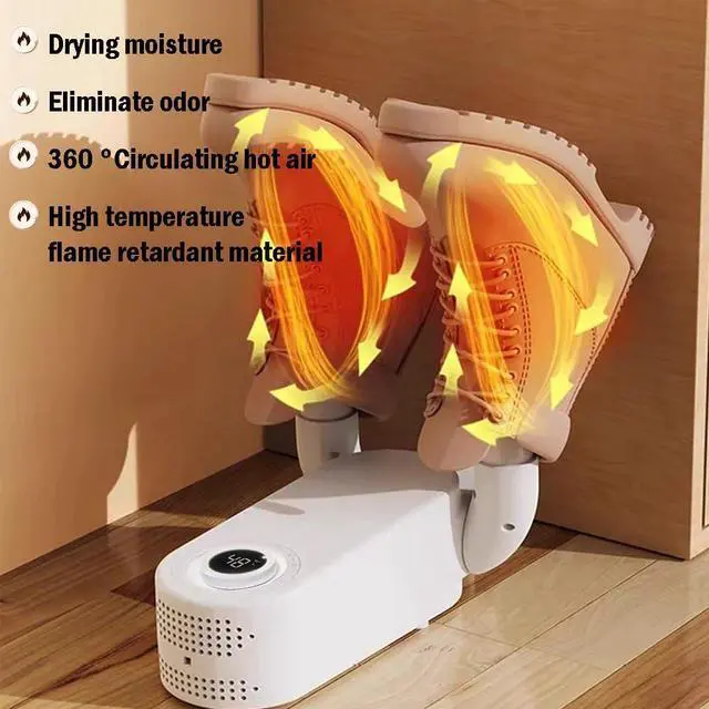 Circulating Hot Air Drying: This shoe, boot & glove dryer uses 360° circulating hot air to dry footwear from the inside out. The steady hot airflow reaches every corner, efficiently drying itemsmaking it a practical drying rack and boot deodorizer
