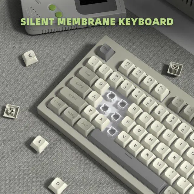 98 Key Membrane Keyboard with Volume KnobRedefine full size keyboard! DK98 keyboard adopt a compact ANSI layout,retaining right side number pad and offset arrow key,maximally keep all the key function you need for productivity and a tactile typing experience while saving space. in addition,providing functional media roller to adjust volume,crater structure offer soft and quiet clicking,easy to operate.