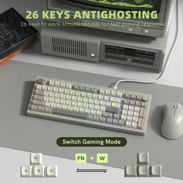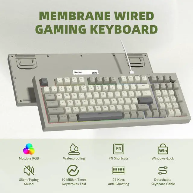 DK98 Quiet Wired Gaming Keyboard Creamy Membrane with Rainbow RGB Backlight